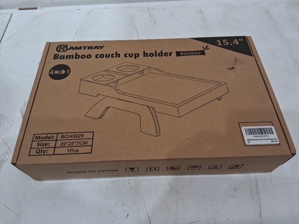BAMBOOTRAY BAMBOO COUCH 4-IN-1 CUP HOLDER - 15.3" x 9.84" x 2.75" - natural bamboo (MODEL: BCH3925)