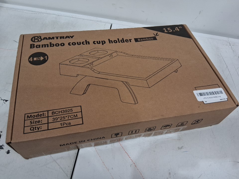 BAMBOOTRAY BAMBOO COUCH 4-IN-1 CUP HOLDER - 15.3" x 9.84" x 2.75" - natural bamboo (MODEL: BCH3925)