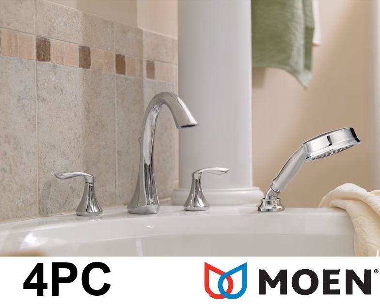 4PC MOEN 2-Handle Roman Tub Faucet Trim Kit - CHROME - (MODEL: INS10589)