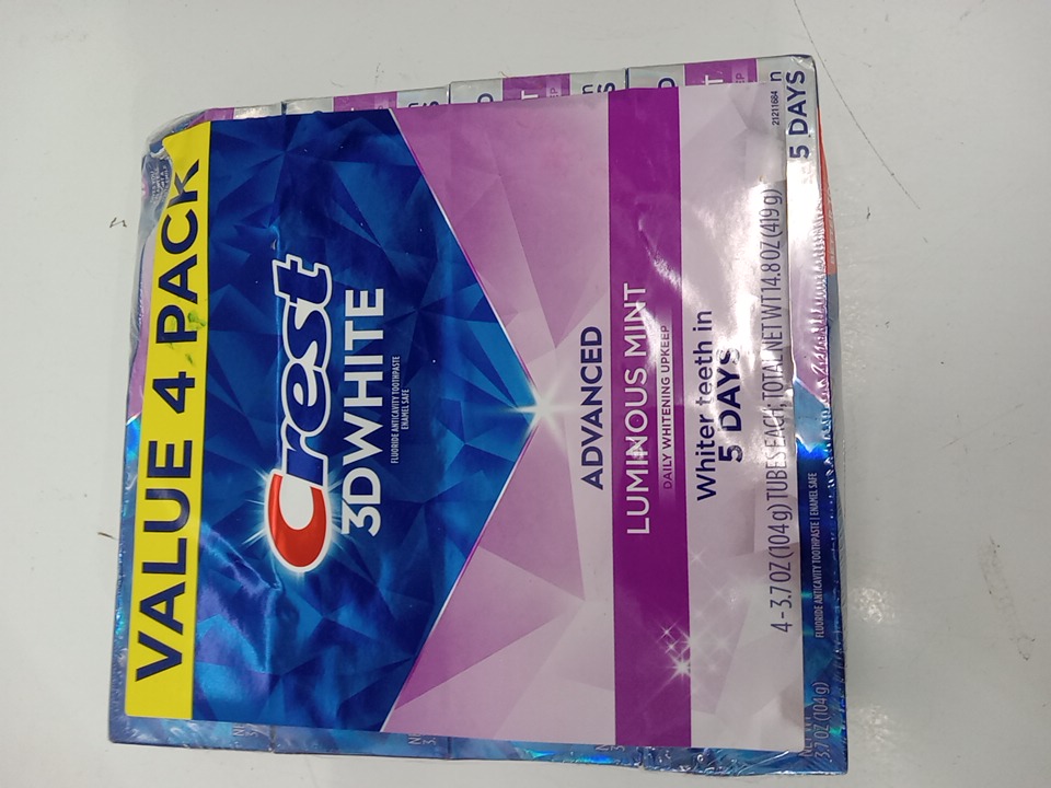 4pk crest 3d white advanced luminous mint toothpaste - 104g each - mint