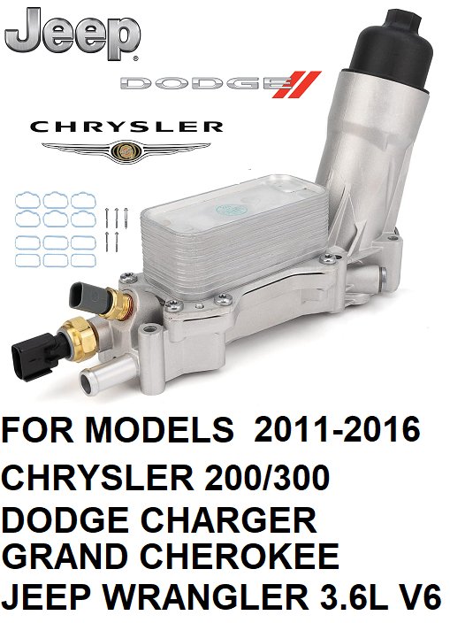 geataat aluminum engline oil cooler & oil filter housing adapter assembly for 2011-2016 chrysler 200/300, dodge charger, grand cherokee, jeep wrangler 3.6L V6 (model: ‎926-876)