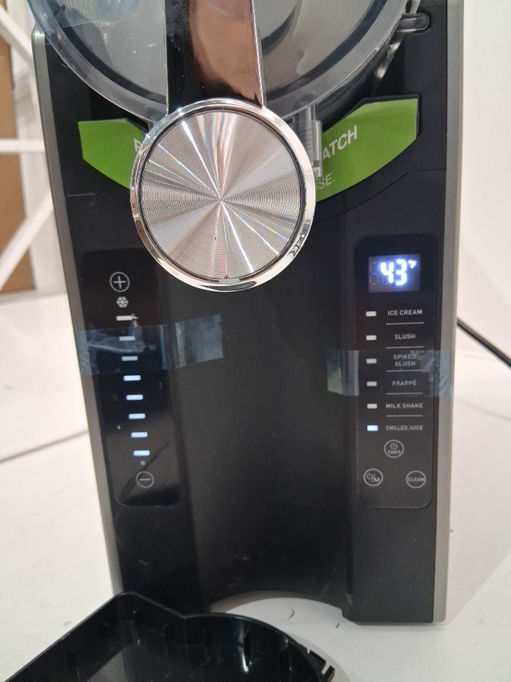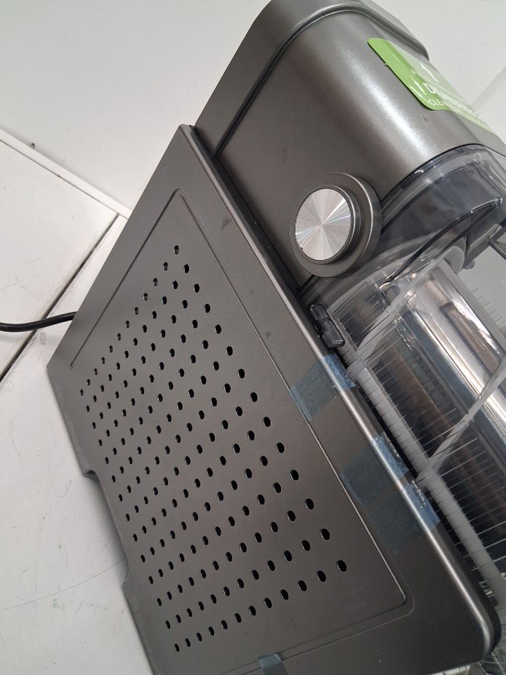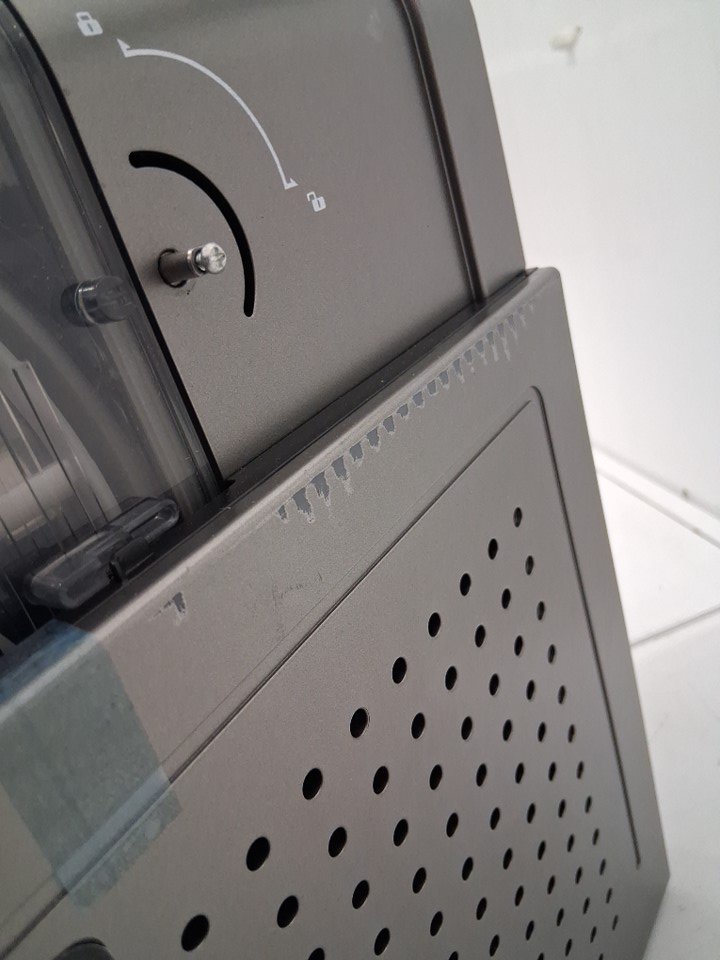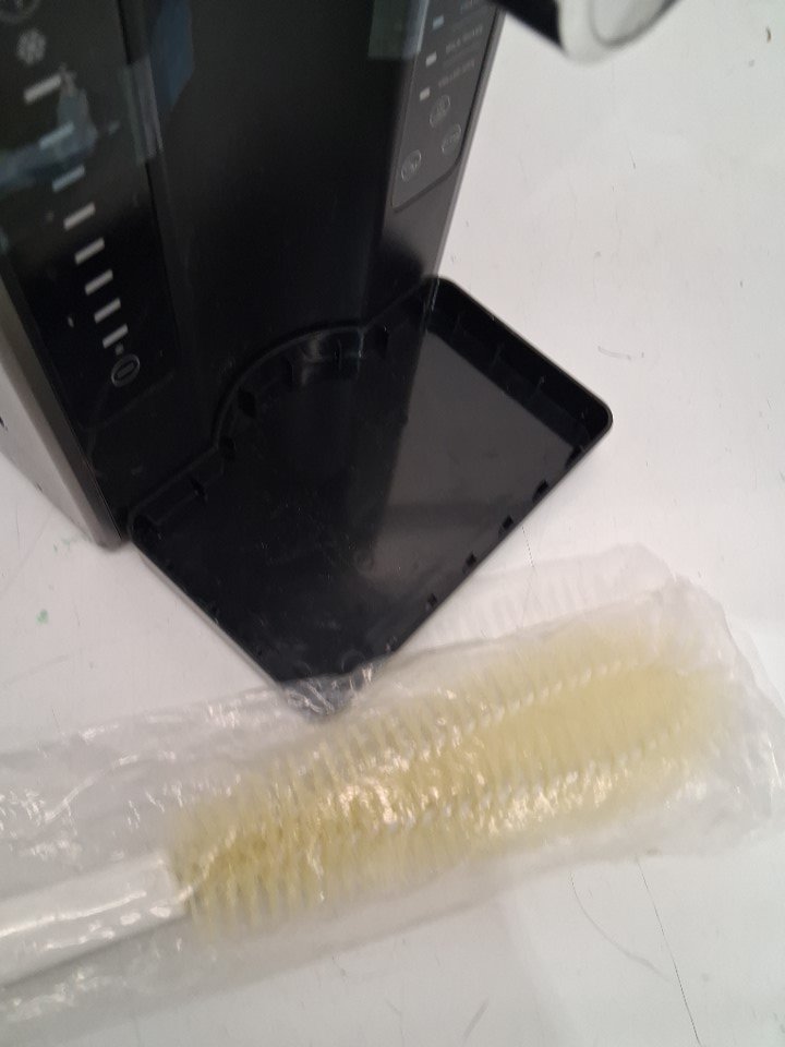 outer casing of machine has scuffing from shipping, and tray is missing. Has been tested for power and functionality