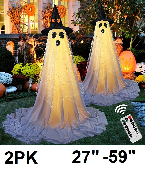 2PK AYGZU PARTY HALLOWEEN DECOR GHOST WITH LIGHT, REMOTE AND TRIPODS - 27" -59" - ASSORTED