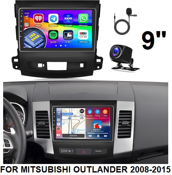 Inefala touchscreen android 13 carplay system with bluetooth, mirror link & back-up camera - for for Mitsubishi Outlander FROM 2008-2015 - BLACK - (MODEL:A3195JG)