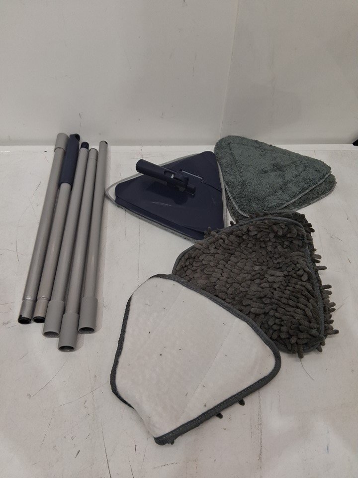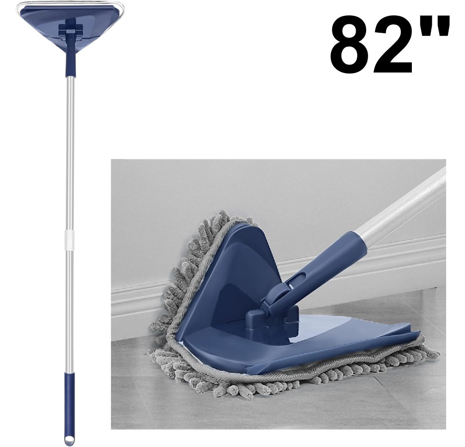 Trennchi Rotating Head & Microfiber Pads Built-in Window Squeegee for Walls - 82" - BLUE/GRAY
