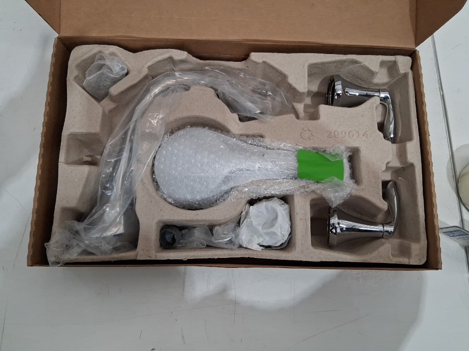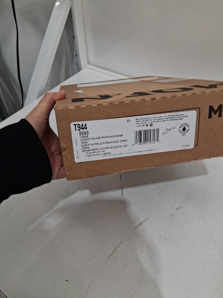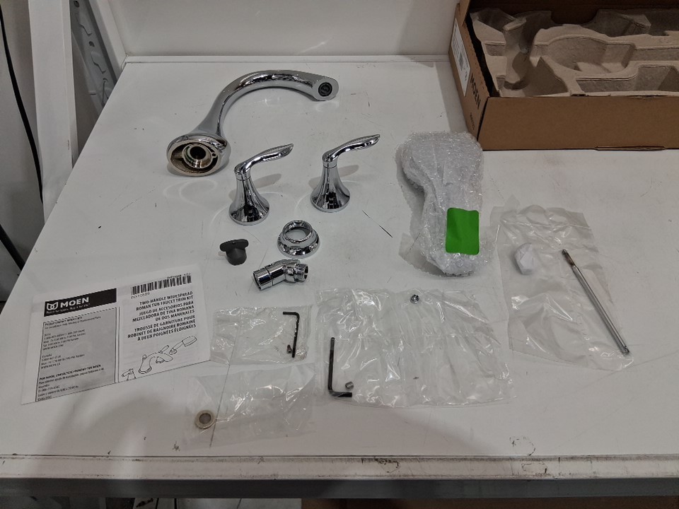 MOEN EVA TWO-HANDLE DECK MOUNT ROMAN TUB FAUCET TRIM KIT WITH SINGLE FUNCTION HANDSHOWER - VALVE REQUIRED - CHROME (MODEL: T944)