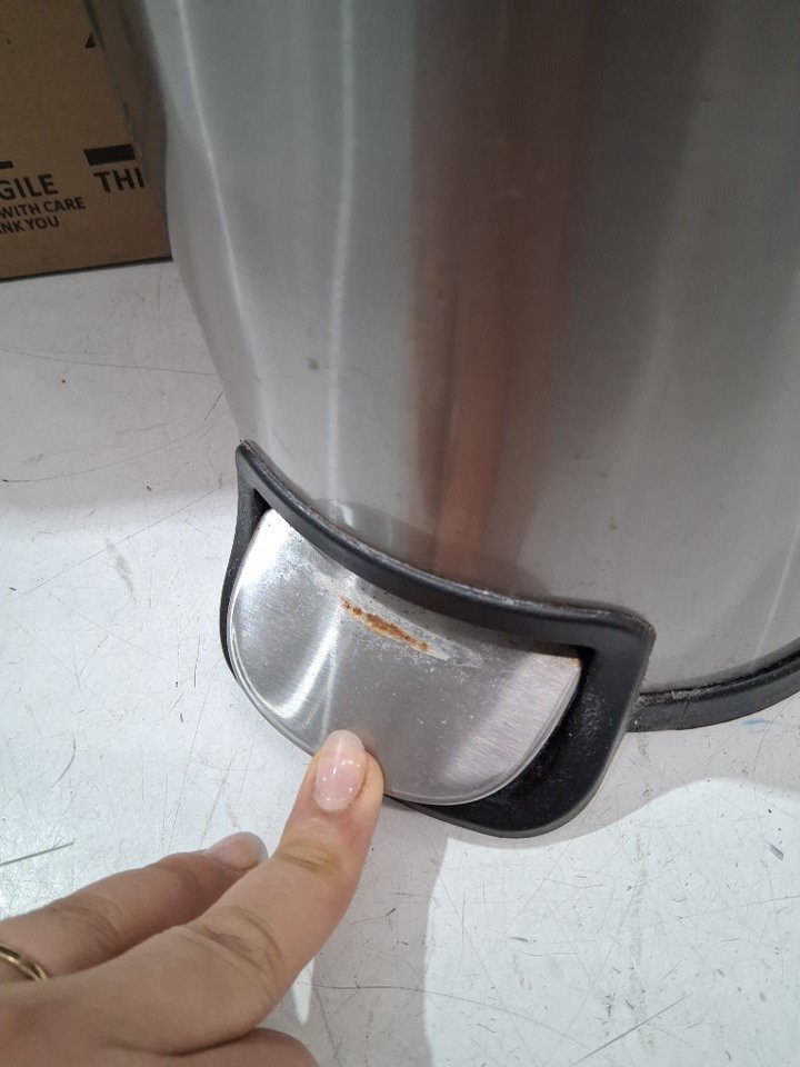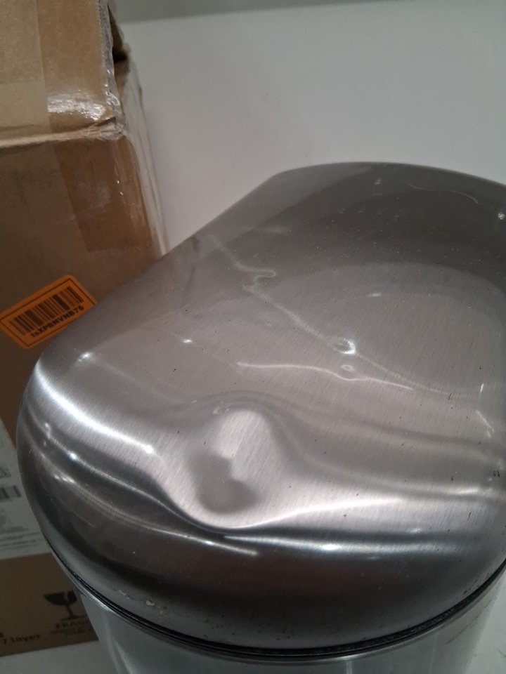 please note there is some residue on the trash can and a dent on the lid from previous use, however it can be cleaned before use
