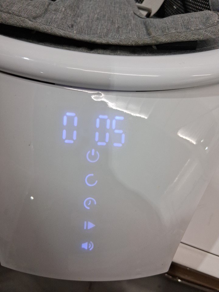 Tested for sounds and power Seat has a small stain and stand has some staining/dirty areas where the pieces connect