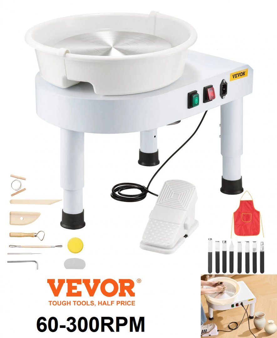 Vevor foot pedal control pottery spinning wheel - 11" - 60-300rpm - white - (model: lssj-515)