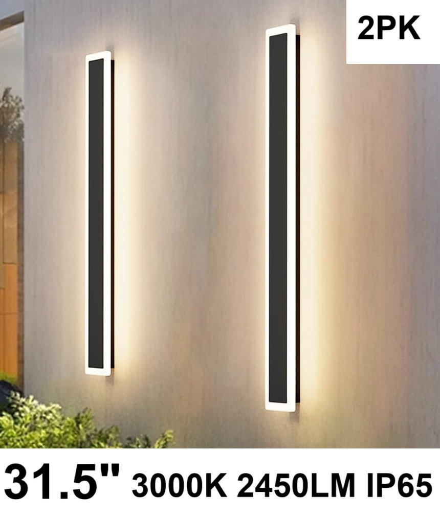 2PK aipsun modern indoor/outdoor water resistant led wall strip sconce light - 315" - 3000k - 2450LM - ip65 - black 9 Model: ‎HW603)