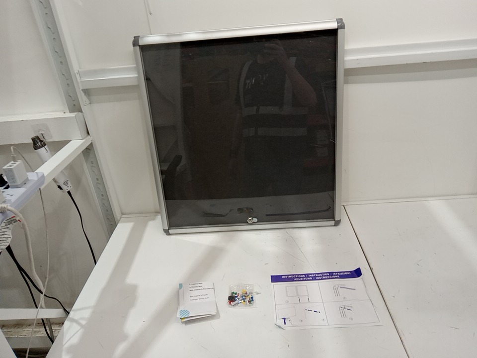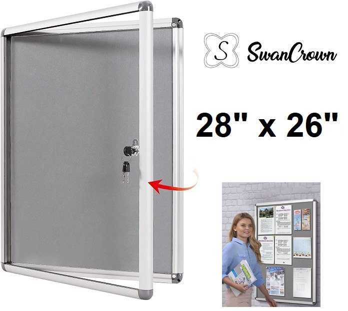 SWANCROWN ENCLOSED LOCKABLE BULLETIN BOARD WITH ALUMINUM FRAME - 28" x 26" - GREY FELT