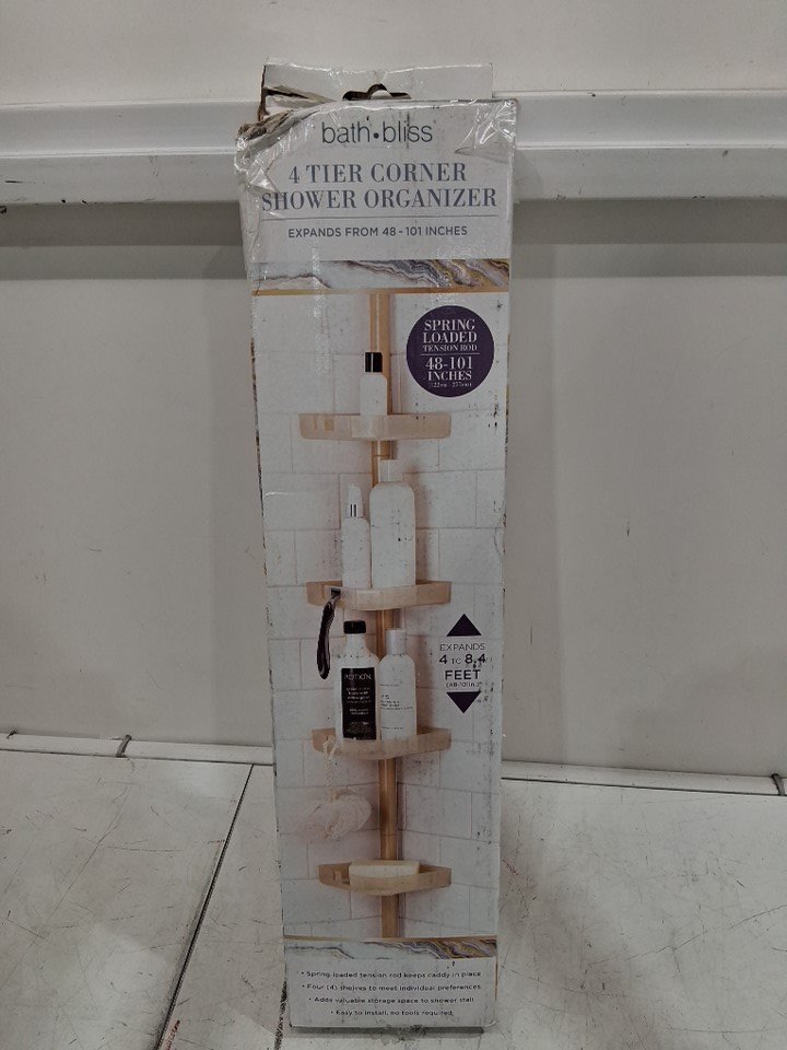 BATH BLISS 4-TIER ADJUSTABLE TENSION CORNER SHOWER CADDY - 48" - 101" - GOLD - (MODEL: 10000-WHTGOLD)