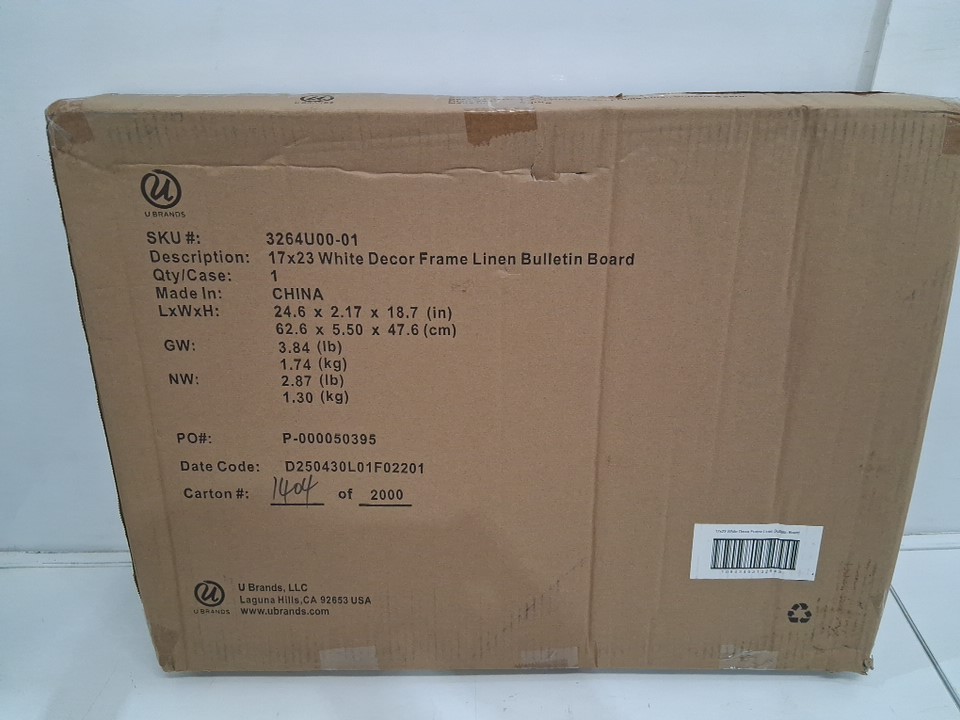 U Brands Linen Cork Linen Bulletin Board - 23" x 17" - White Wood (Model: 3264U00-01)