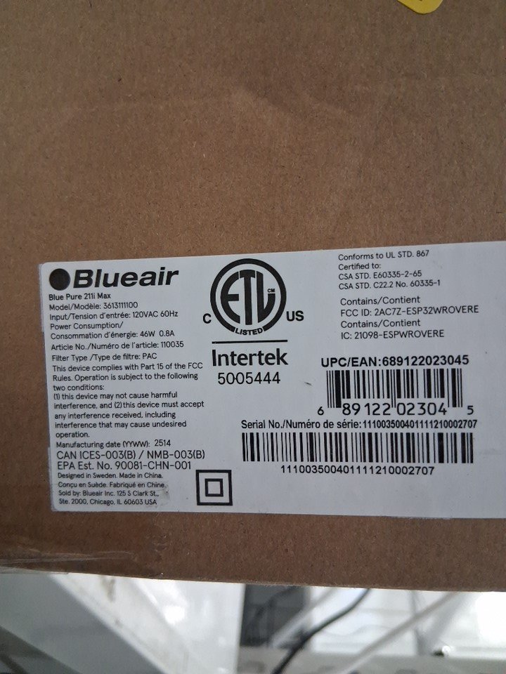 blueair pure 211i max hepasilent dual filtration large home smart air purifier - 1524 sq.ft - white/grey (model: 3613111100)
