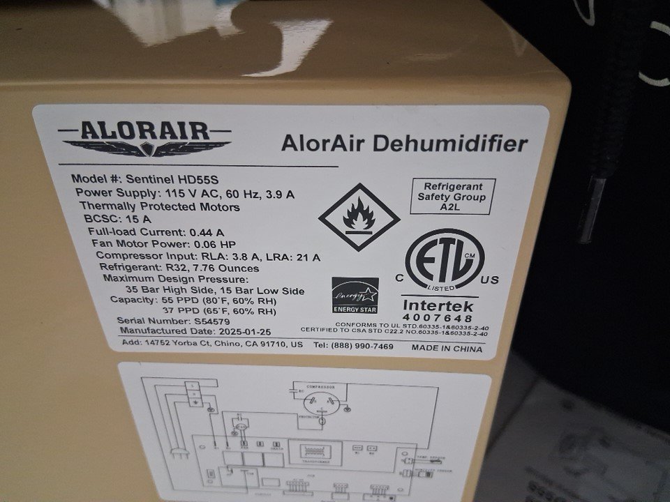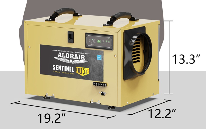 AlorAir Commercial Dehumidifier - 120 PPD - 1300 SQ FT - 19.2" x 12.2" x 13.3" - Beige (Model: Sentinel HD55S)