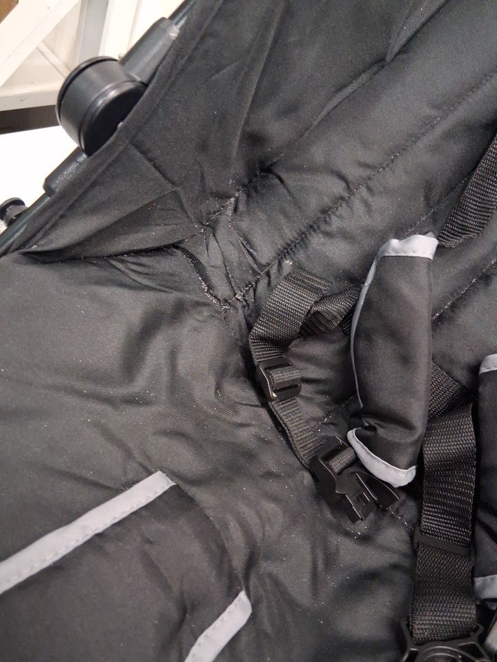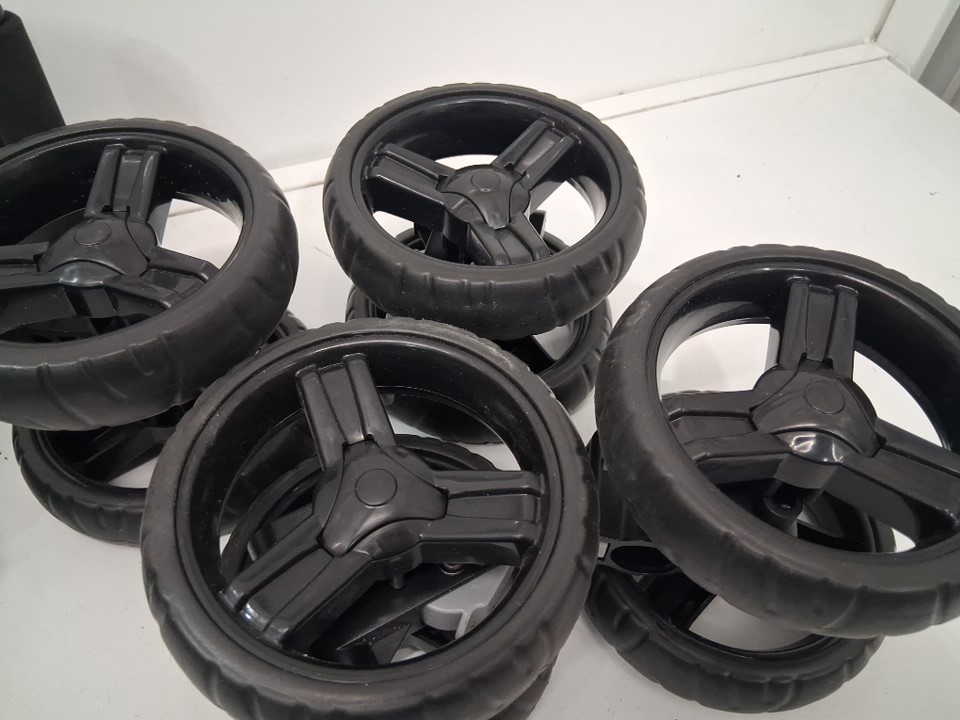 wheels have light dirt discoloration, blemishes from wheel installation and seat has loose dirt on it