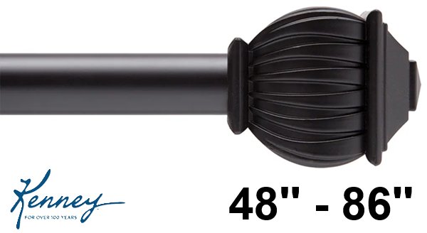 Kenney Beckett Steel Decorative Curtain Rod - 48'' - 86'' - Black