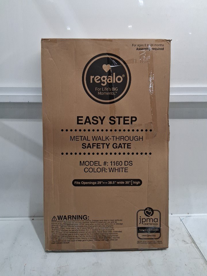 REGALO EASY-STEP METAL WALK-THROUGH SAFETY GATE - 30" x 29'' to 38.5'' - WHITE (MODEL: 1160DS)