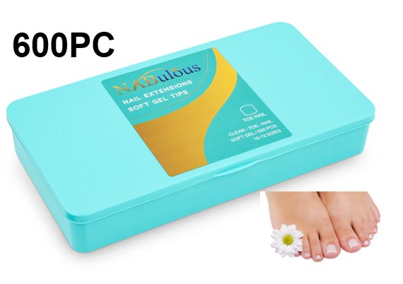 600PC NABulous Soft Gel Nail TOE Tips - SIZES 10-12 CLEAR