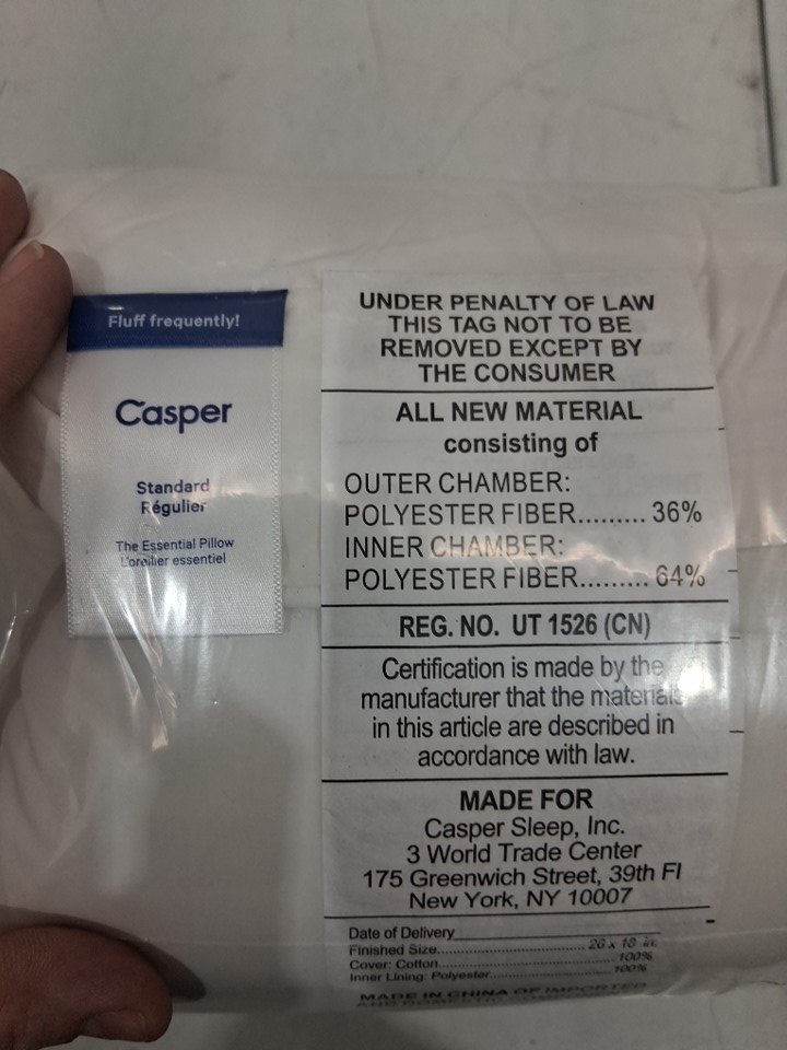 CASPER ESSENTIAL hybrid COOLING pillow - standard - 18" X 26" - WHITE