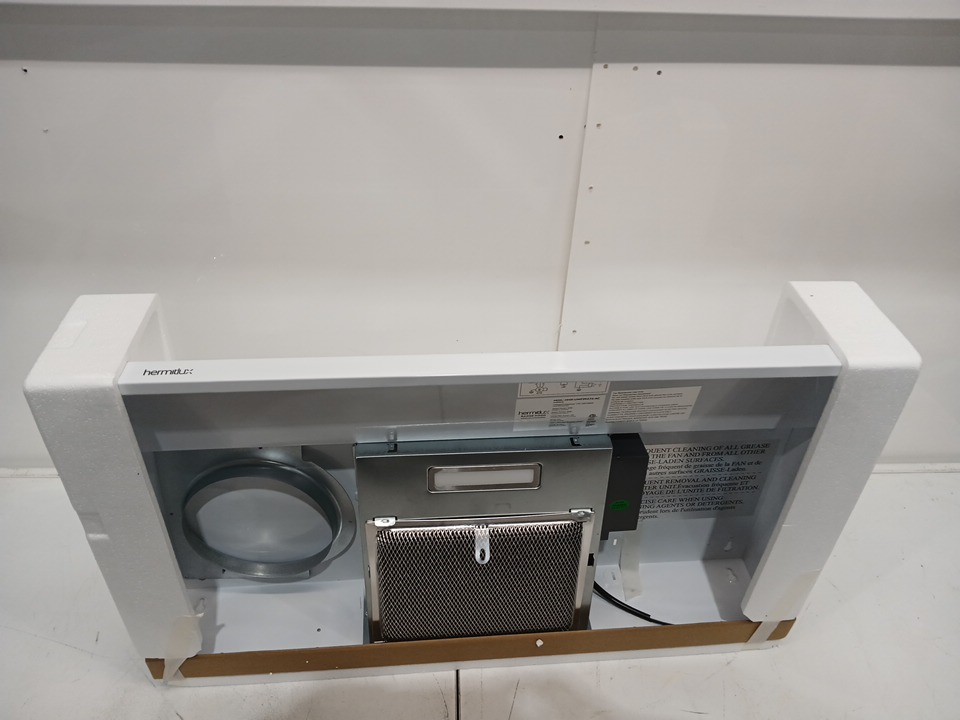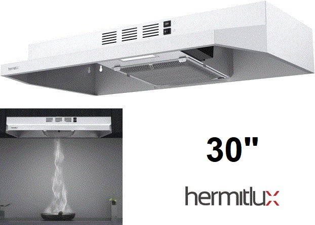 Hermitlux Range Hood Under Cabinet, Convertible Kitchen Exhaust Fan with LED Light - 30"×17.5"×4.7" - White (MODEL: HMX-UWF39A76-AC)