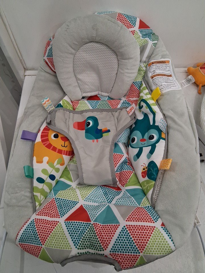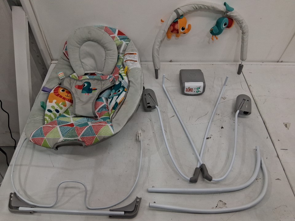 BRIGHT STARTS BABY BOUNCER SOOTHING VIBRATIONS INFANT SEAT - TAGGIES, MUSIC, REMOVABLE-TOY BAR - 0-6 MONTHS UP TO 20 LBS - TOUCAN TANGO (MODEL: ‎10589-ES)
