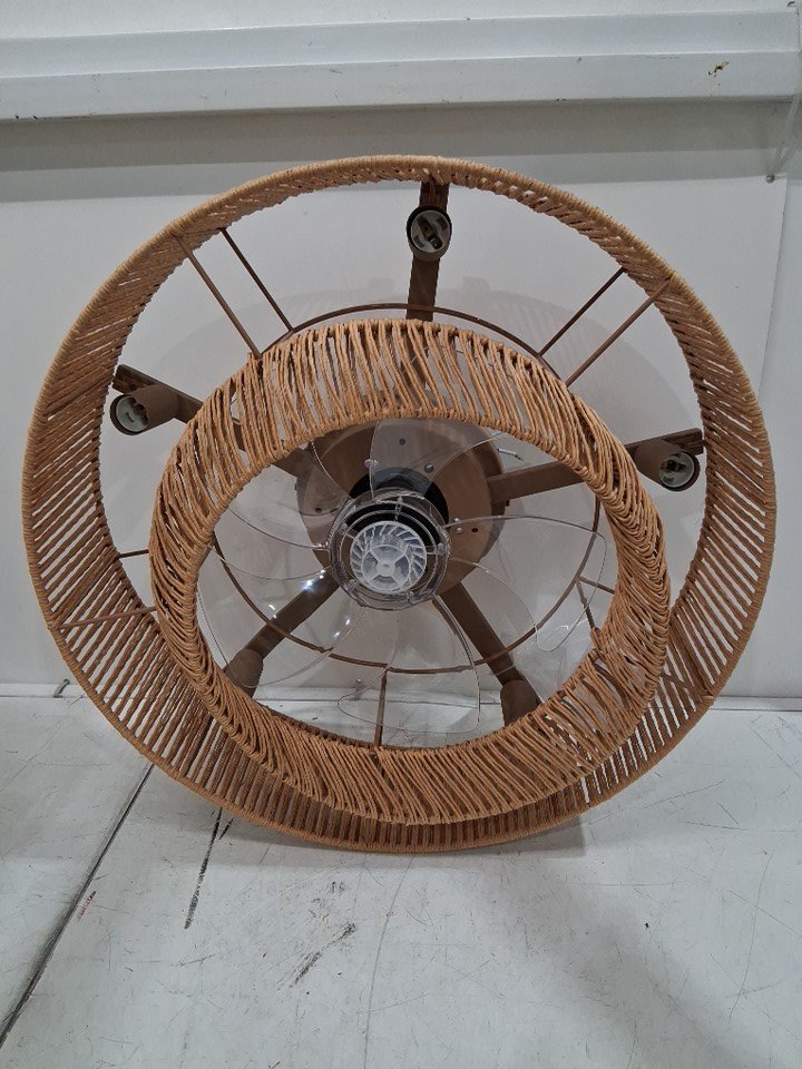 ainqiant Boho Caged Ceiling Fans with Lights Flush Mount, Layered Rattan Ceiling Fan with Light Remote Control with Reversible 6 Speeds for Bedroom, Nursery, Living Room, - E12 Base / 20" - gold