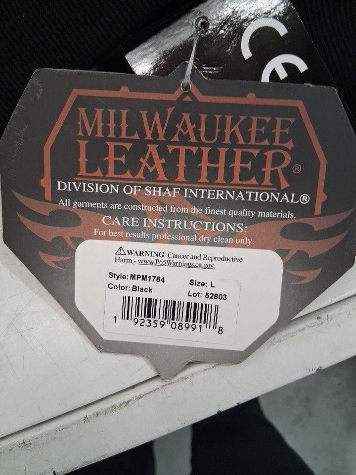 men's Milwaukee Leather riding jacket with shoulder and elbow padding - large - black - (style:MPM1764-BLACKMPM1764)