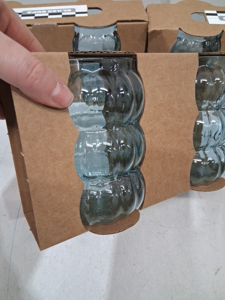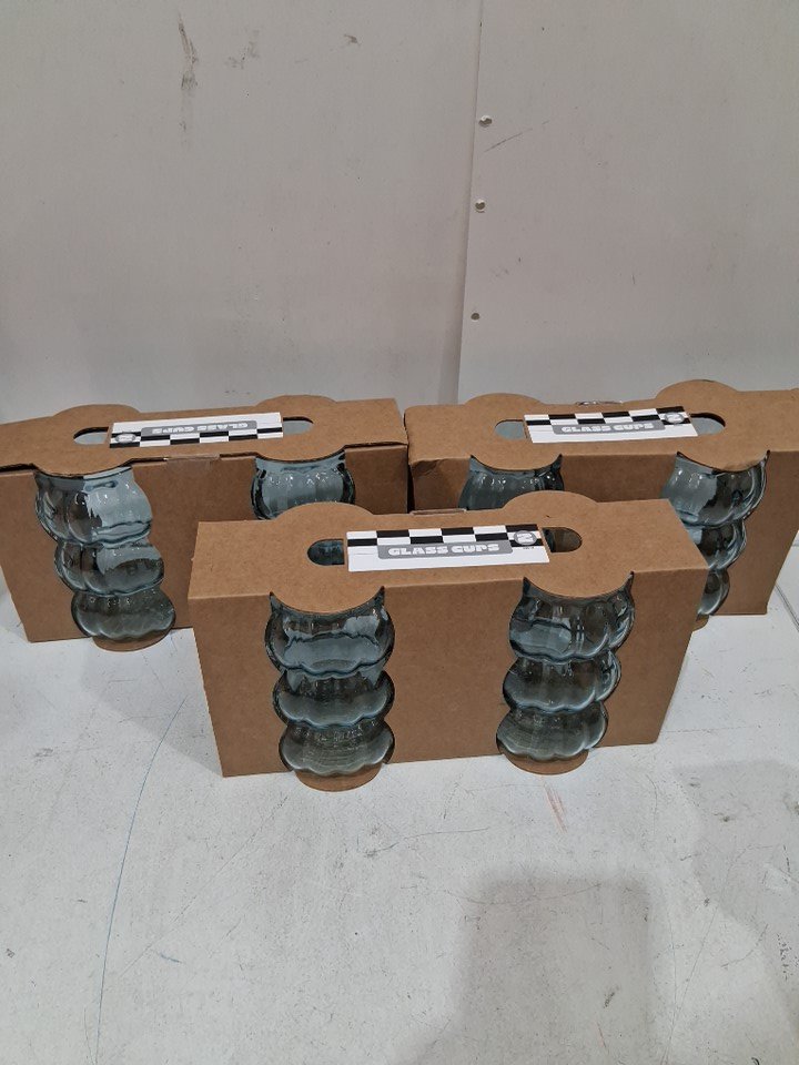 6PK decorative fun ribbed bubble glass cups