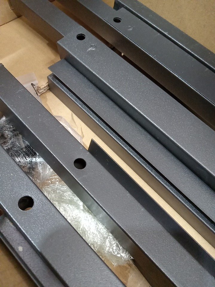 Scuffs/screw marks on it from previous use.