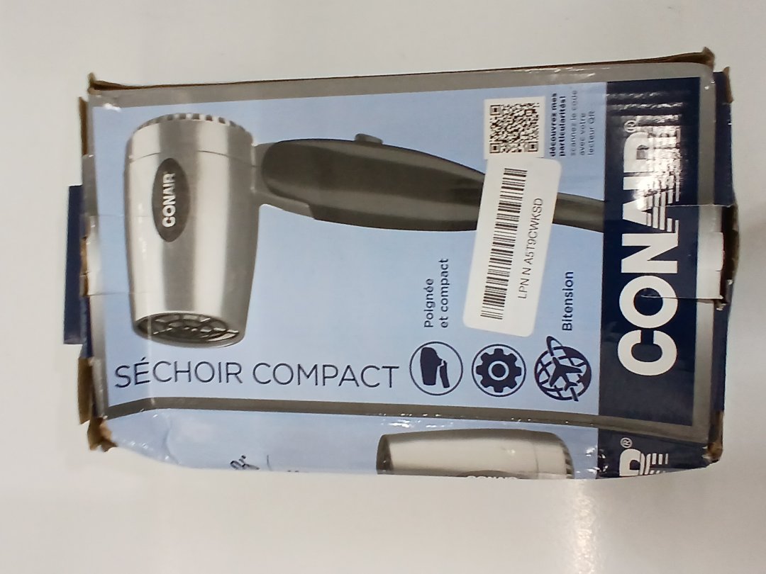 Conair compact travel hair blow dryer with folding handle - 1600W - Grey (model: 124NPC)