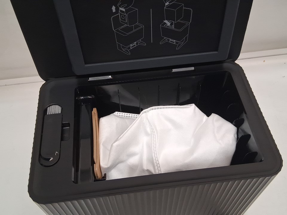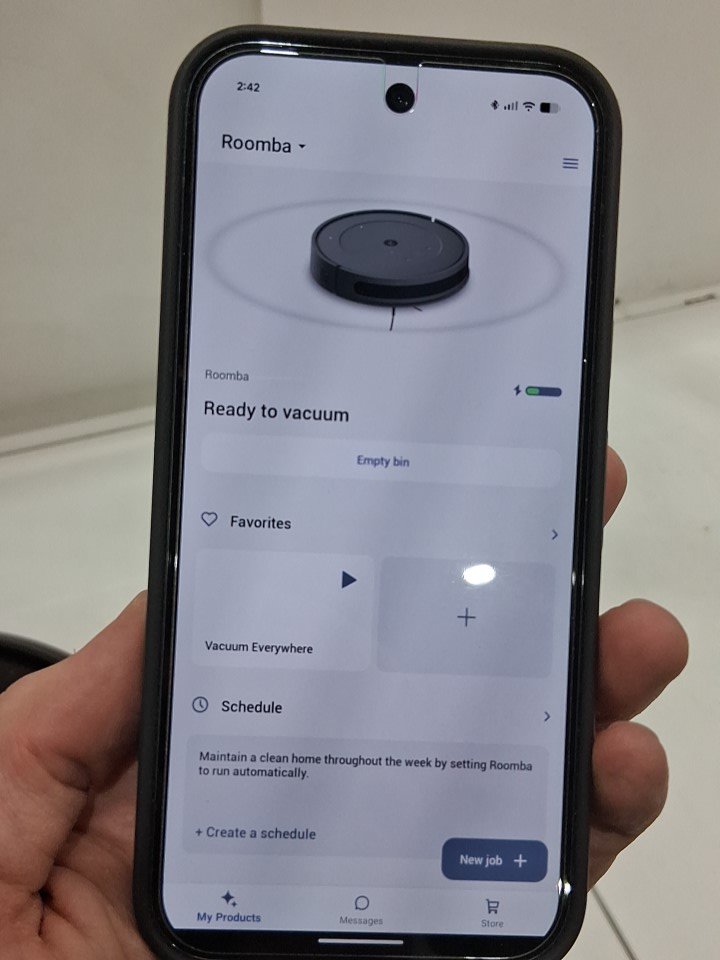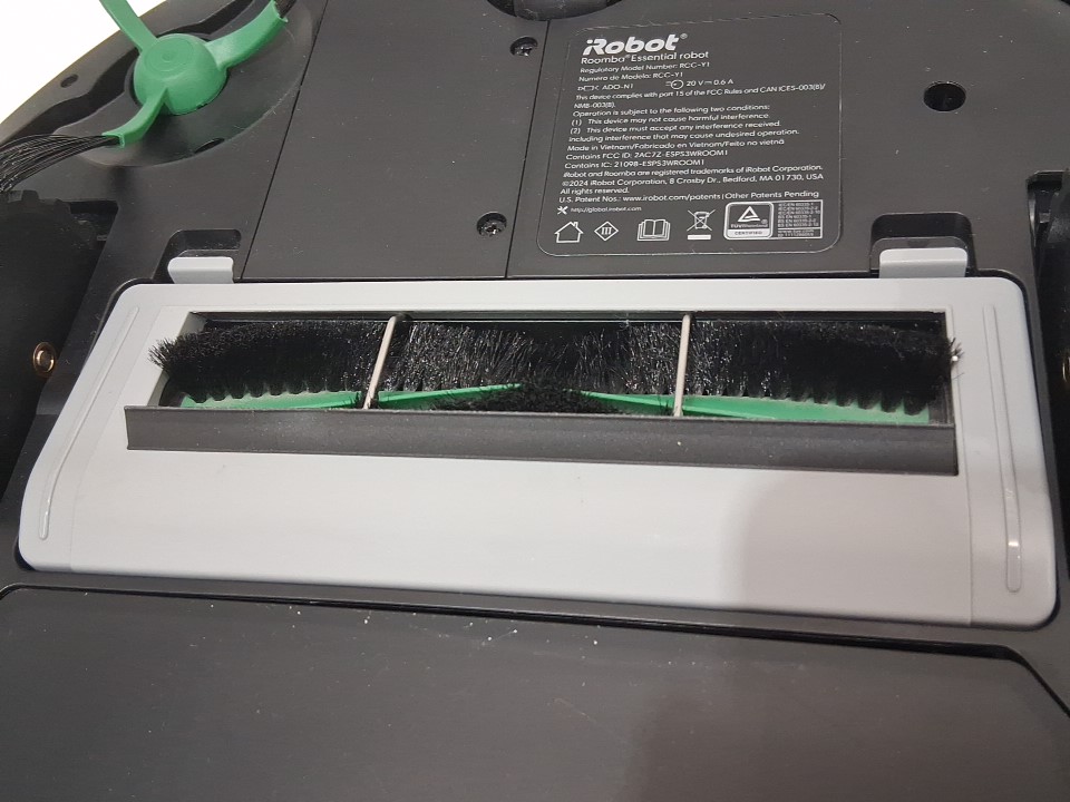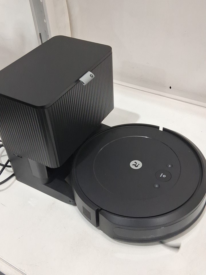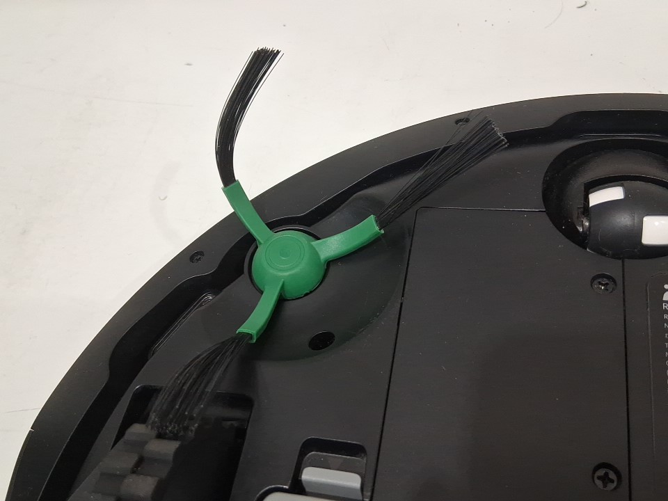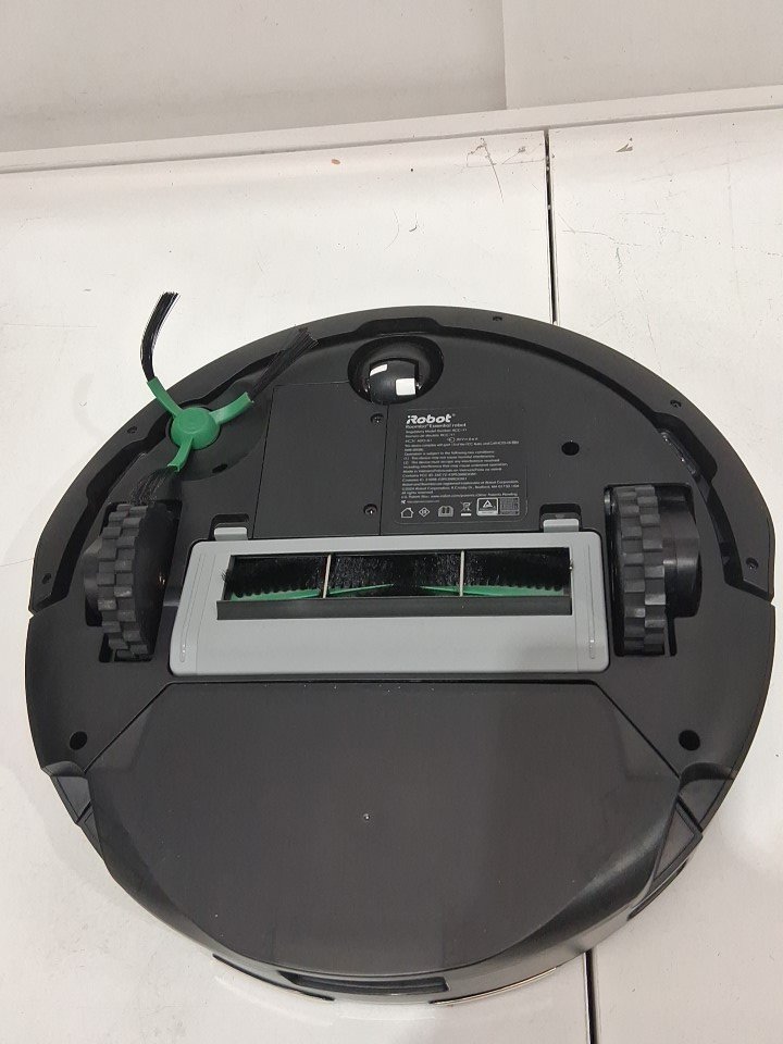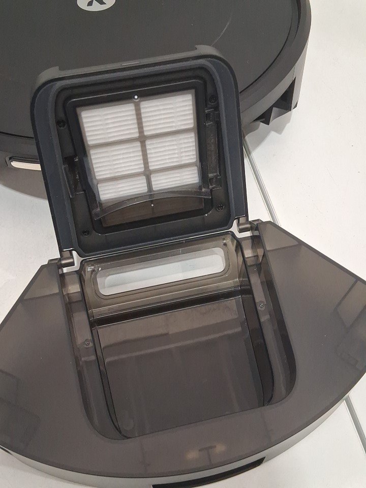 **Tested for power, app connectivity, basic functions (spot clean/return home).** Item has minor dust/debris in the docking area and dustbin/filter area, light wear on the side brush from previous gentle use, see photos.