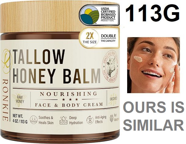 ronkie tallow honey balm nourishing face and body cream with raw honey - 113g