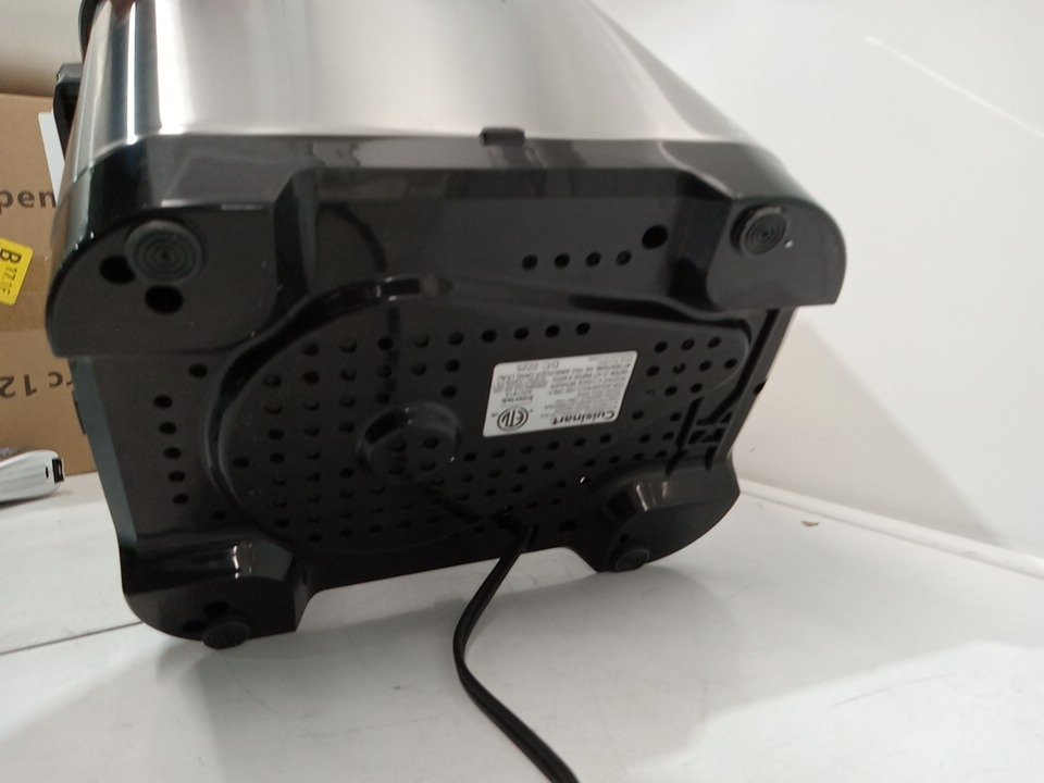 Item appears new/unused, however the top lid/flap is broken from latch (may be fixed) and there are multiple dents from shipping/handling. Tested for power only.