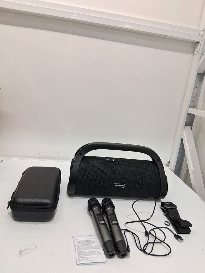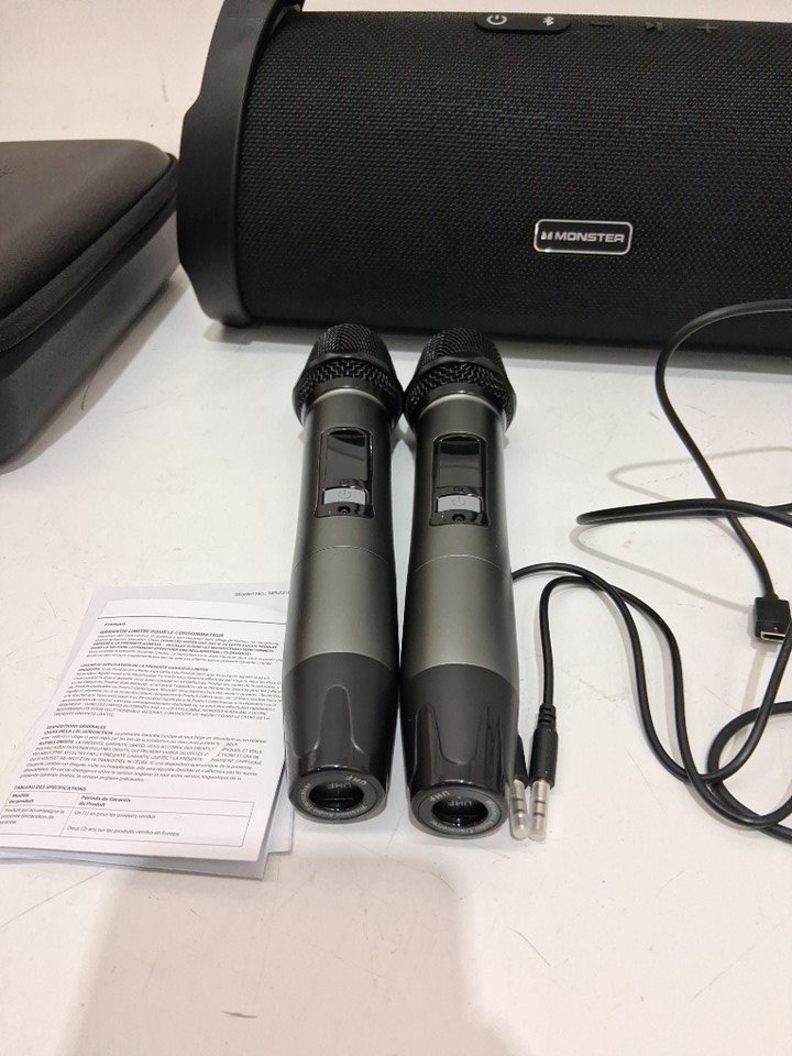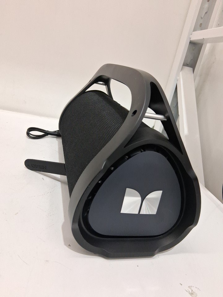 Item has been tested for power and Bluetooth connectivity for the speaker only. The tip of the charging cord is a little bent, see photos for reference.