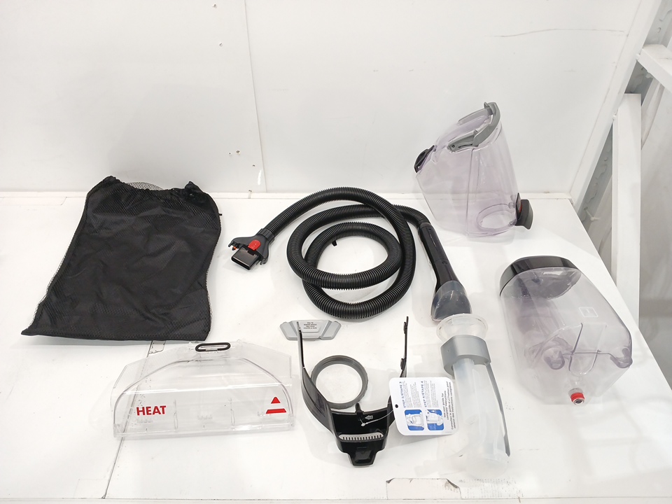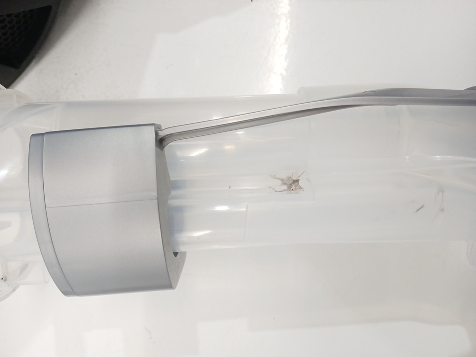 The plastic at the front of the vacuum is undone (see images). This item is dirty and has scuffs. This item has been tested for power