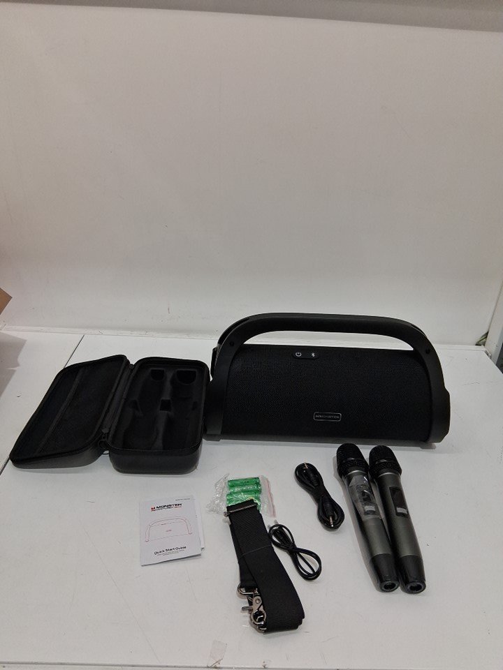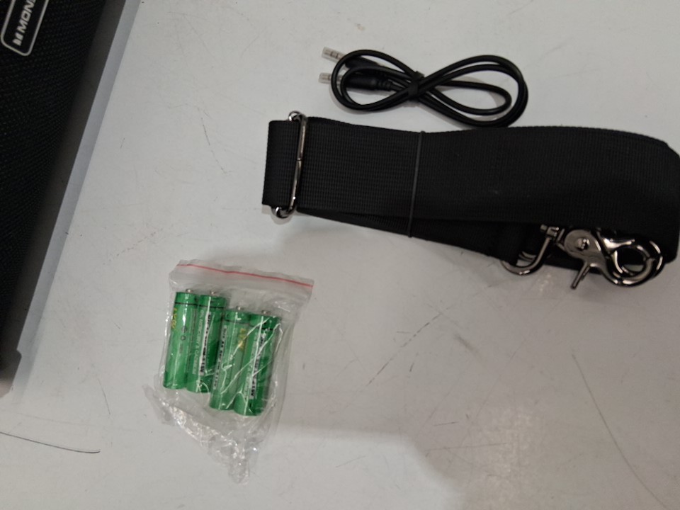 Item has been tested for power and Bluetooth connectivity for the speaker only. Item is missing the charging cords.