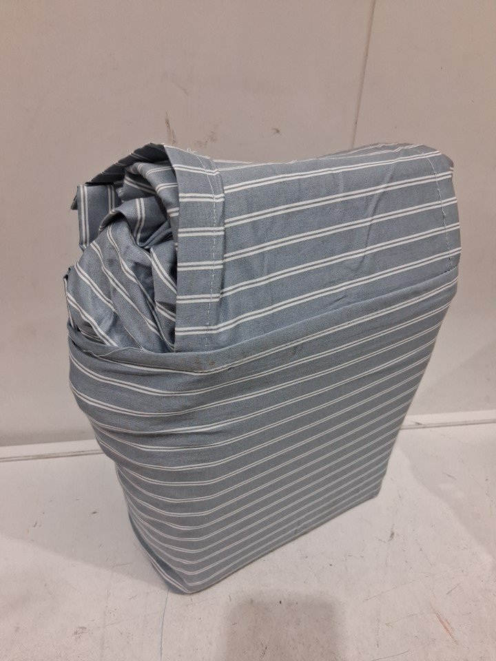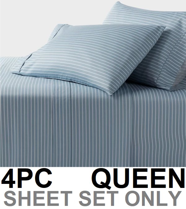 4pc threshold 100% cotton performance sheet set - flat sheet, fitted sheet, 2 pillow cases - 400 thread count - queen - blue stripe