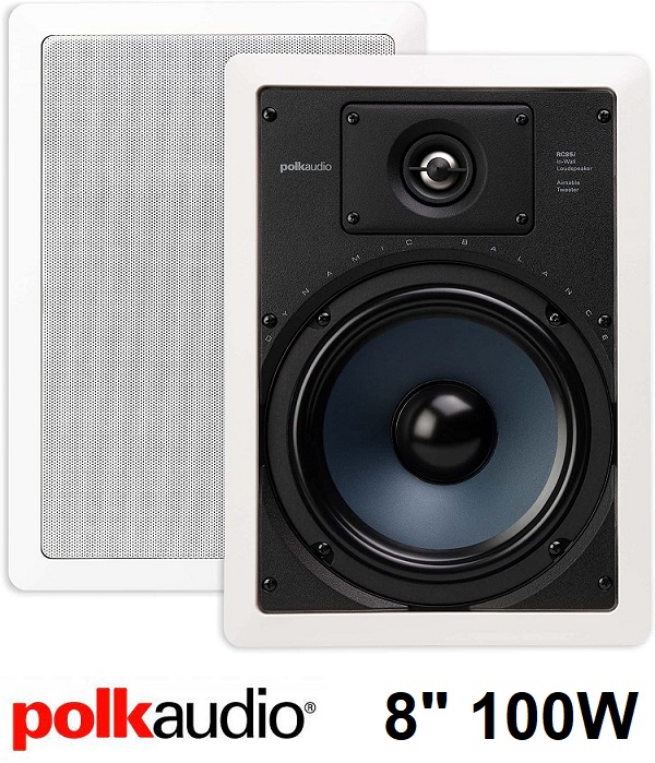 (1 PAIR) Polk Audio RC85i Premium In-Wall 8" 2-WAY Speakers FOR INDOOR AND OUTDOOR - WHITE PAINTABLE GRILLE (AW0085-A)