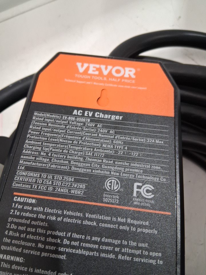 VEVOR Level 2 Portable EV Charger Vehicle Charger with 28ft cable - nema 14-50 240V 32AMP - BLACK AND WHITE - (MODEL: ev-b06-us007b)