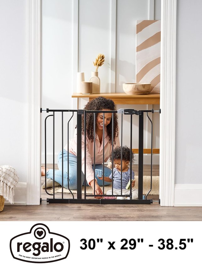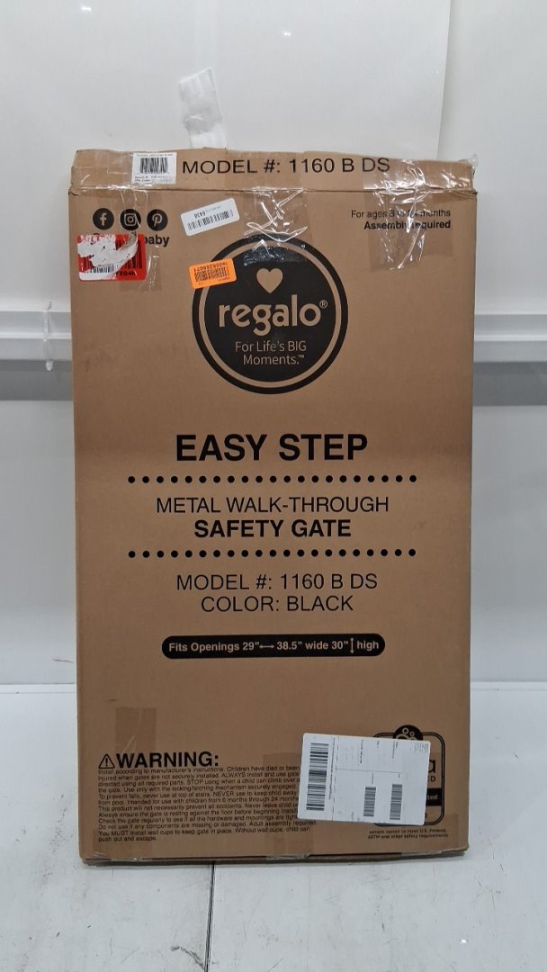 REGALO EASY-STEP METAL WALK-THROUGH SAFETY GATE - 30" x 29'' to 38.5'' - black (MODEL: 1160DS)