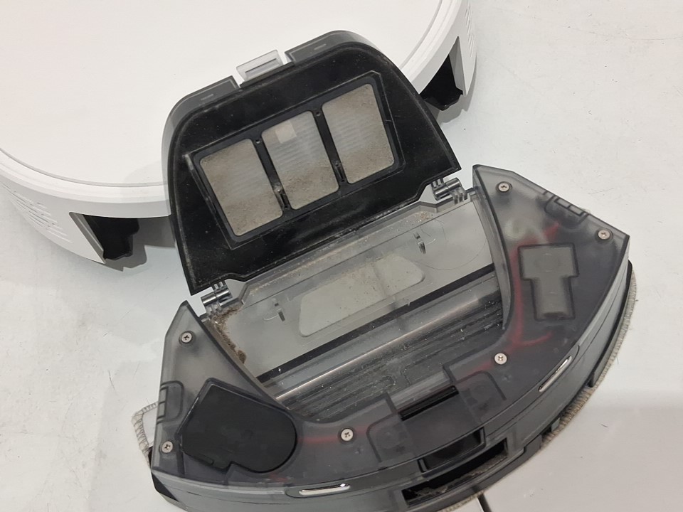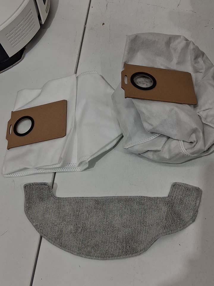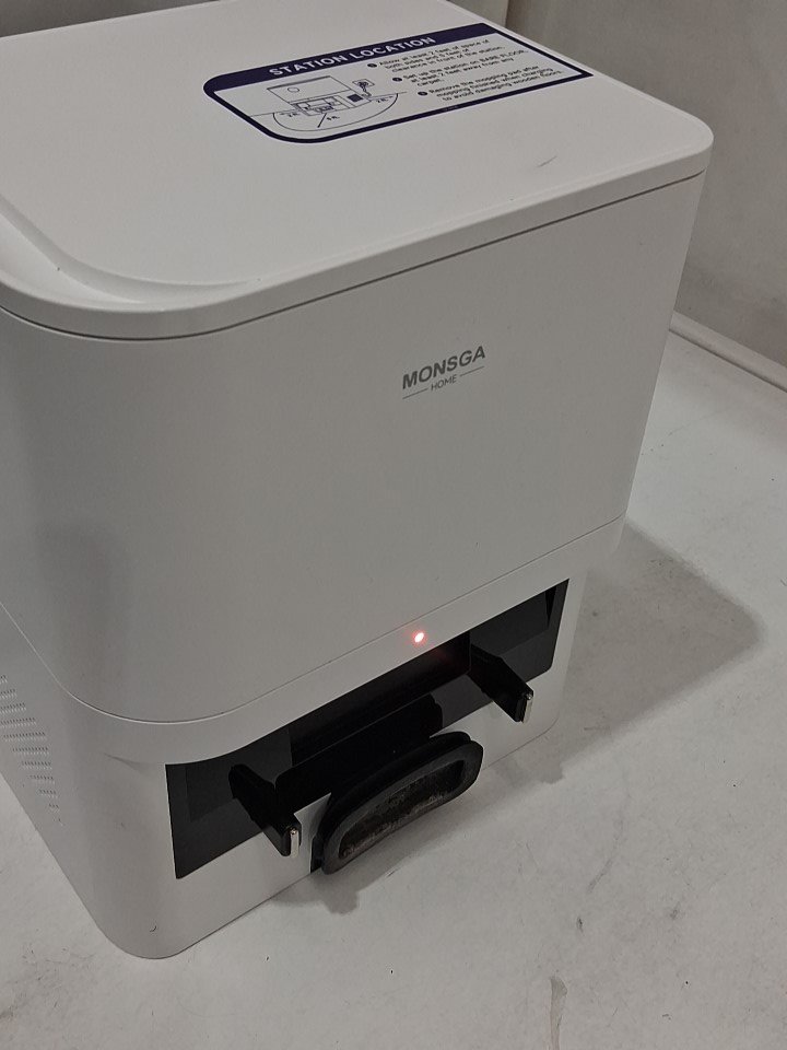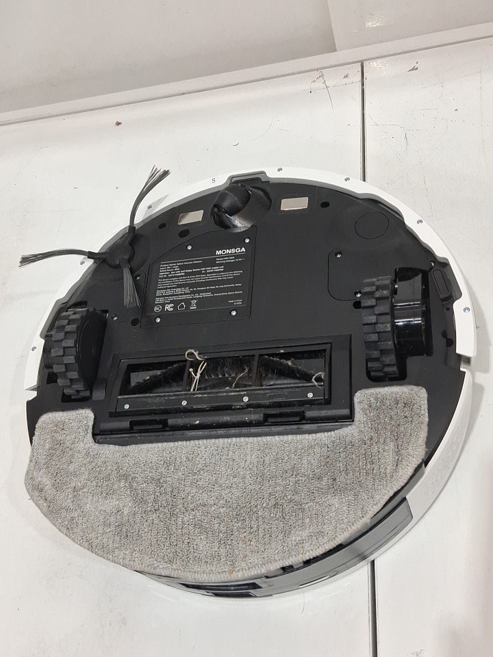 **Tested for power, movement, basic functions (spot clean/return home) using the buttons on the robot.** Item has minor dust/debris build-up in the docking area and dustbin/filter area, hairs/debris caught in the main roller, light wear on the mop pad and side brush from previous gentle use, see photos.