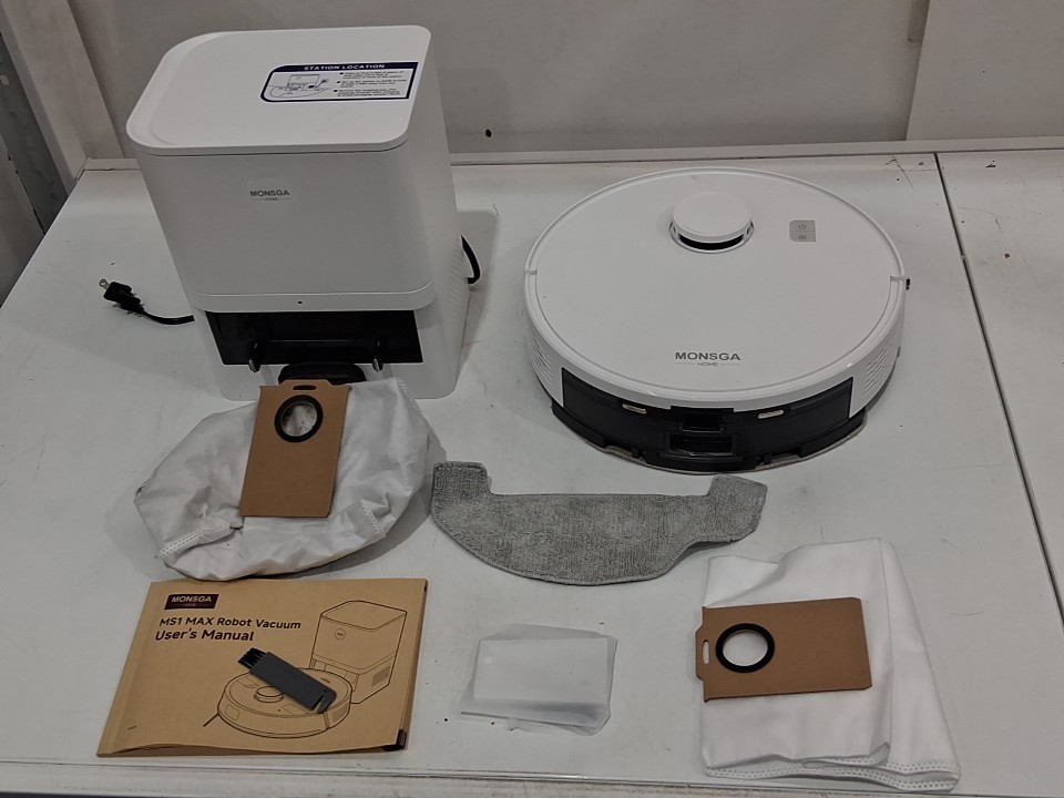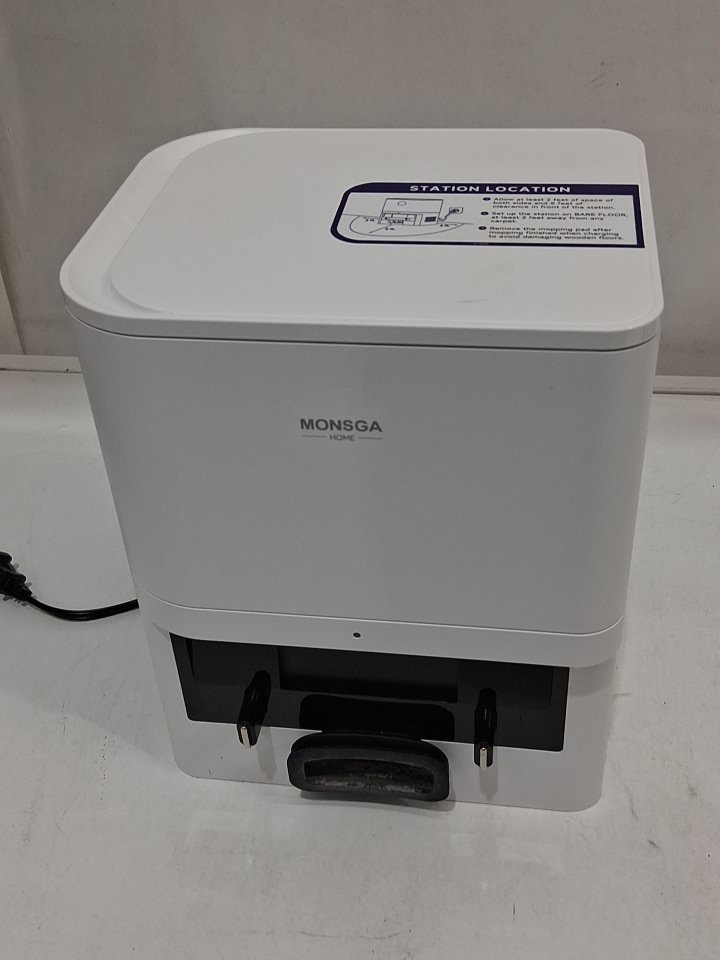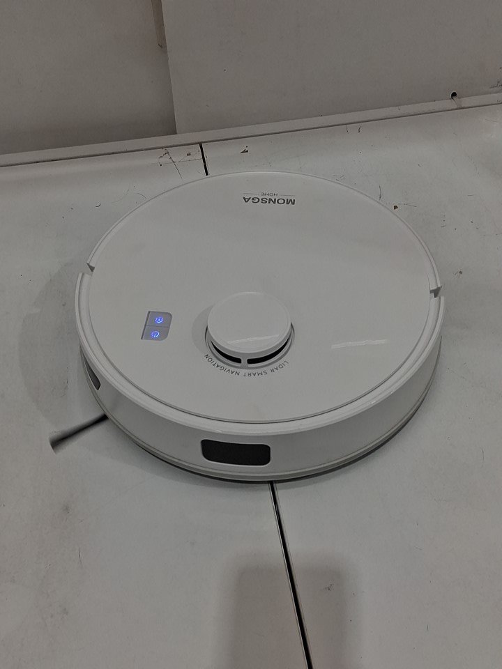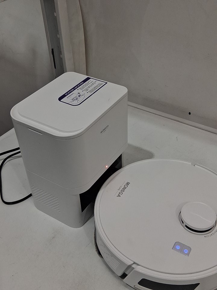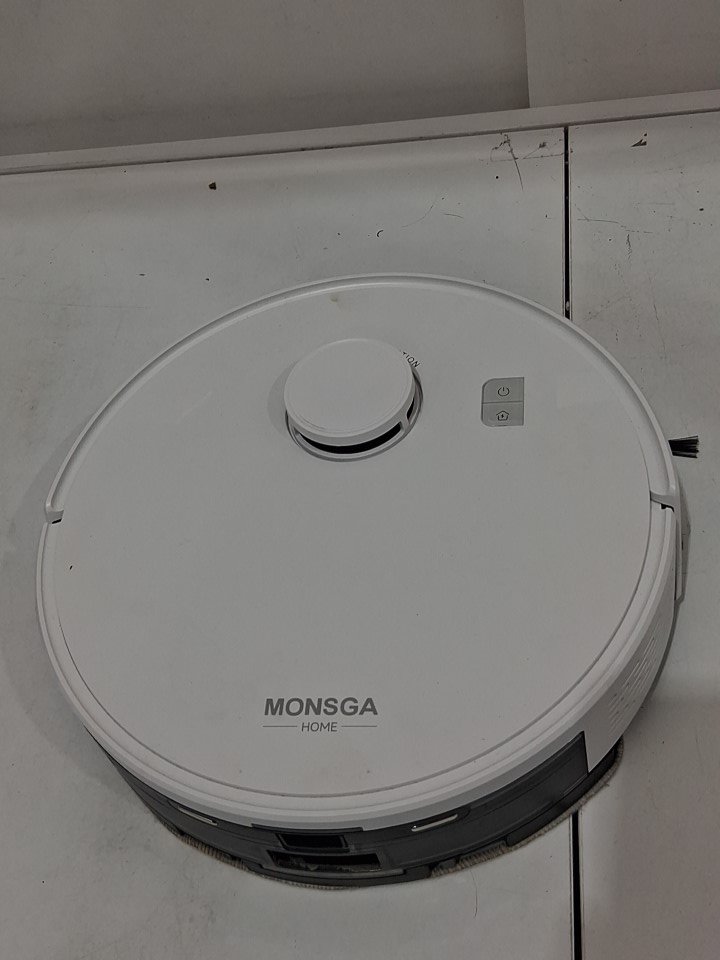 **Tested for power, movement, basic functions (spot clean/return home) using the buttons on the robot.** Item has minor dust/debris build-up in the docking area and dustbin/filter area, hairs/debris caught in the main roller, light wear on the mop pad and side brush from previous gentle use, see photos.