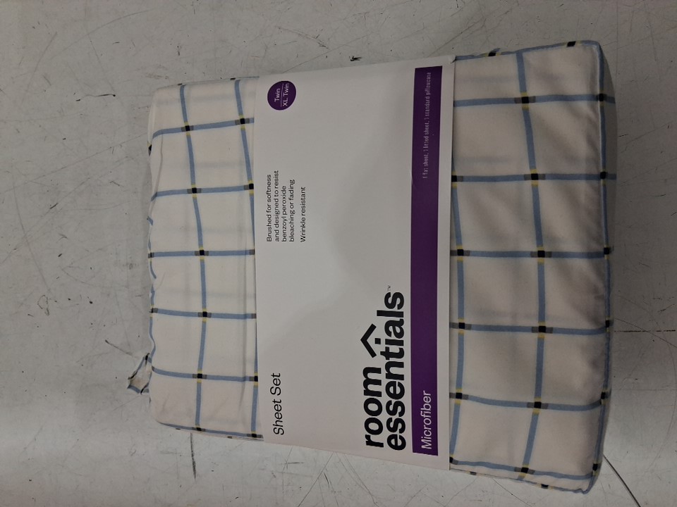 3pc room essentials microfiber sheet set - flat sheet, fitted sheet, pillow case - twin / twin xl - BLUE GRID