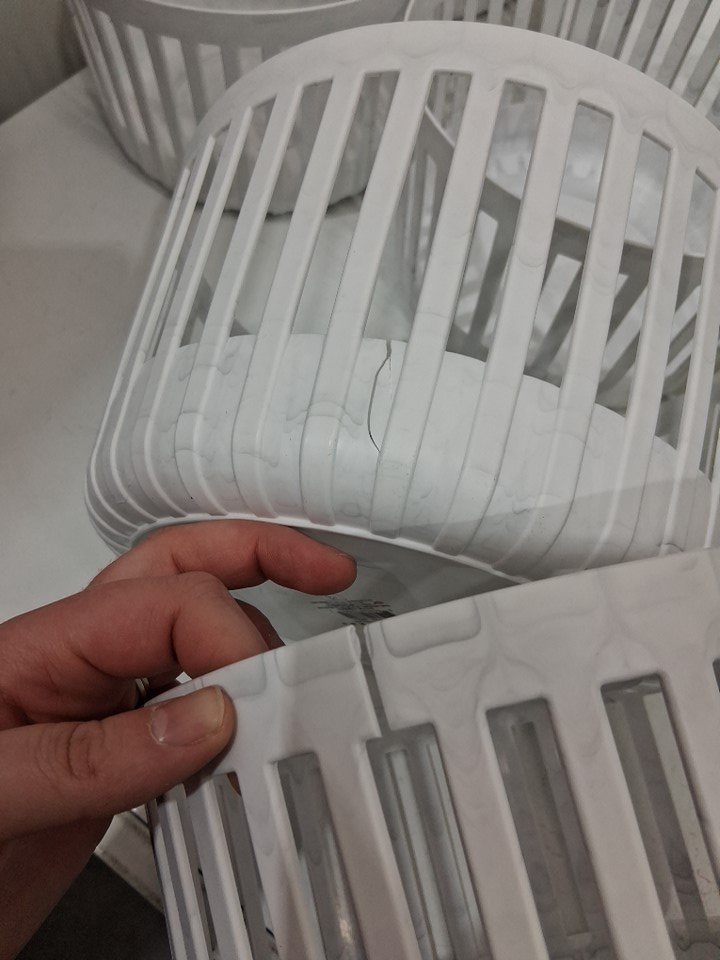 2 OF THE BASKETS HAVE LIGHT CRACKS, CAN STILL BE USED, MAYBE REPAIR WITH TAPE OR GLUE