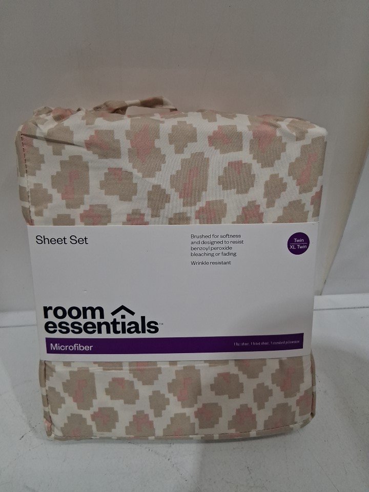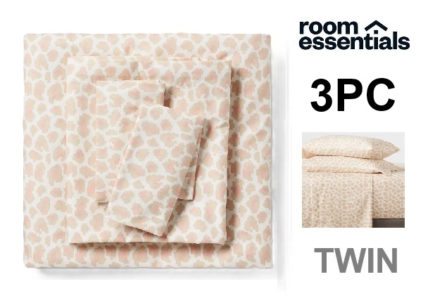 3PC Room Essentials Microfiber Sheet Set - Twin - Pink Leopard Print