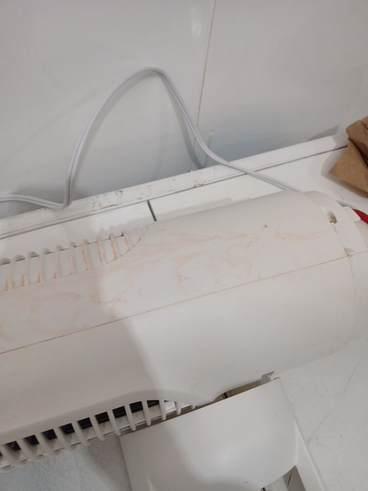 Please note the remote is not included. There is a presence of dust/debris, indicating prior use. There is a presence of orange residue, appears to be from a marker on the side. See photos attached.