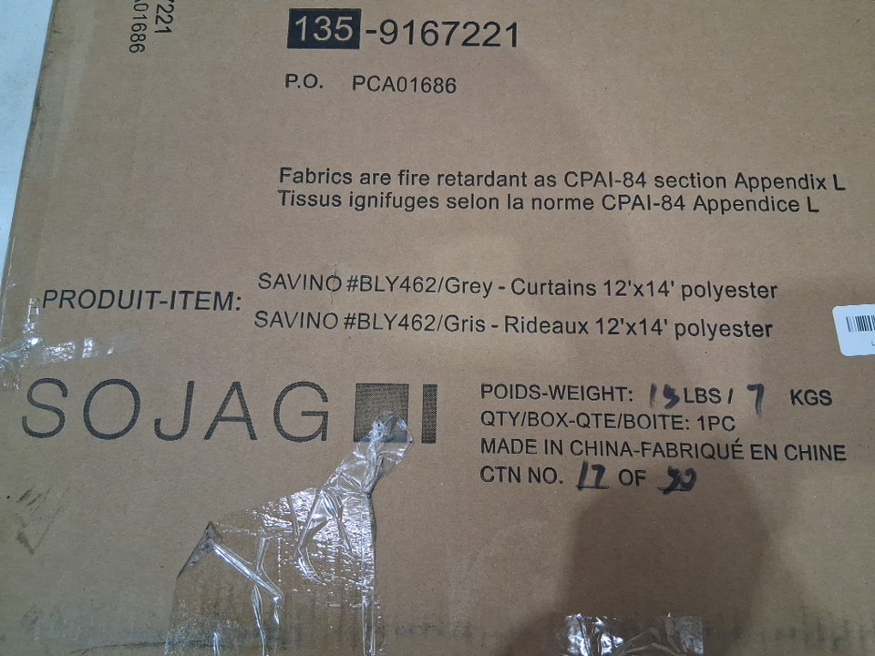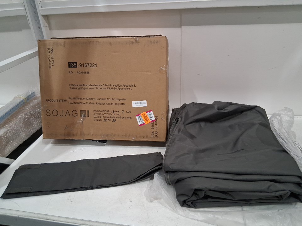 (4 PANEL) SOJAG WEATHERPROOF HEAVY POLYESTER GAZEBO CURTAINS - 12FT x 14FT - GREY (MODEL: bly462/grey)