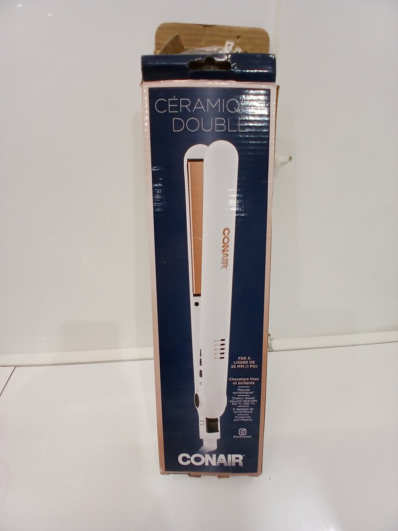 CONAIR DOUBLE CERAMIC STRAIGHTENER FLAT IRON - 1" - WHITE/ROSE GOLD (MODEL: CS221NC)