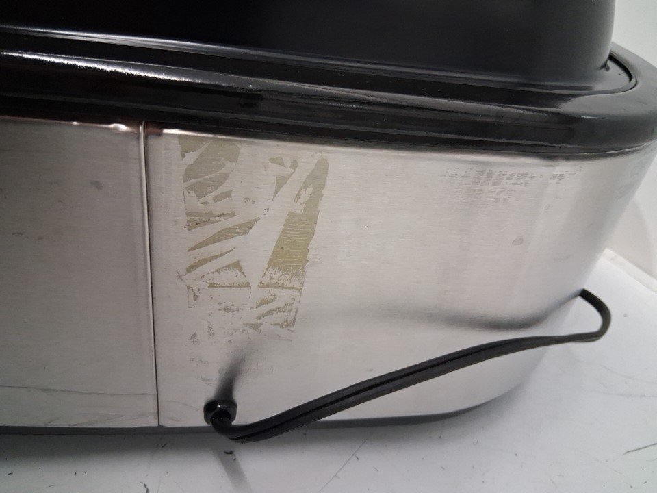 Item has some marks in bottom of pan and a scratch/scuff, dirt on outside from prior use (see photos) Tested for power- working